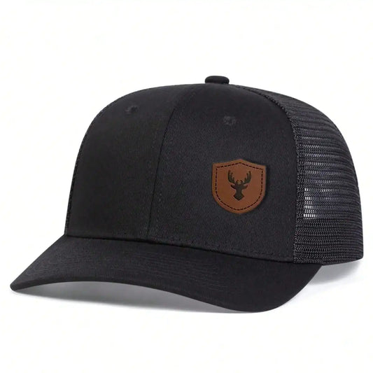 Unisex Deer Head Leather Label Baseball Net Caps