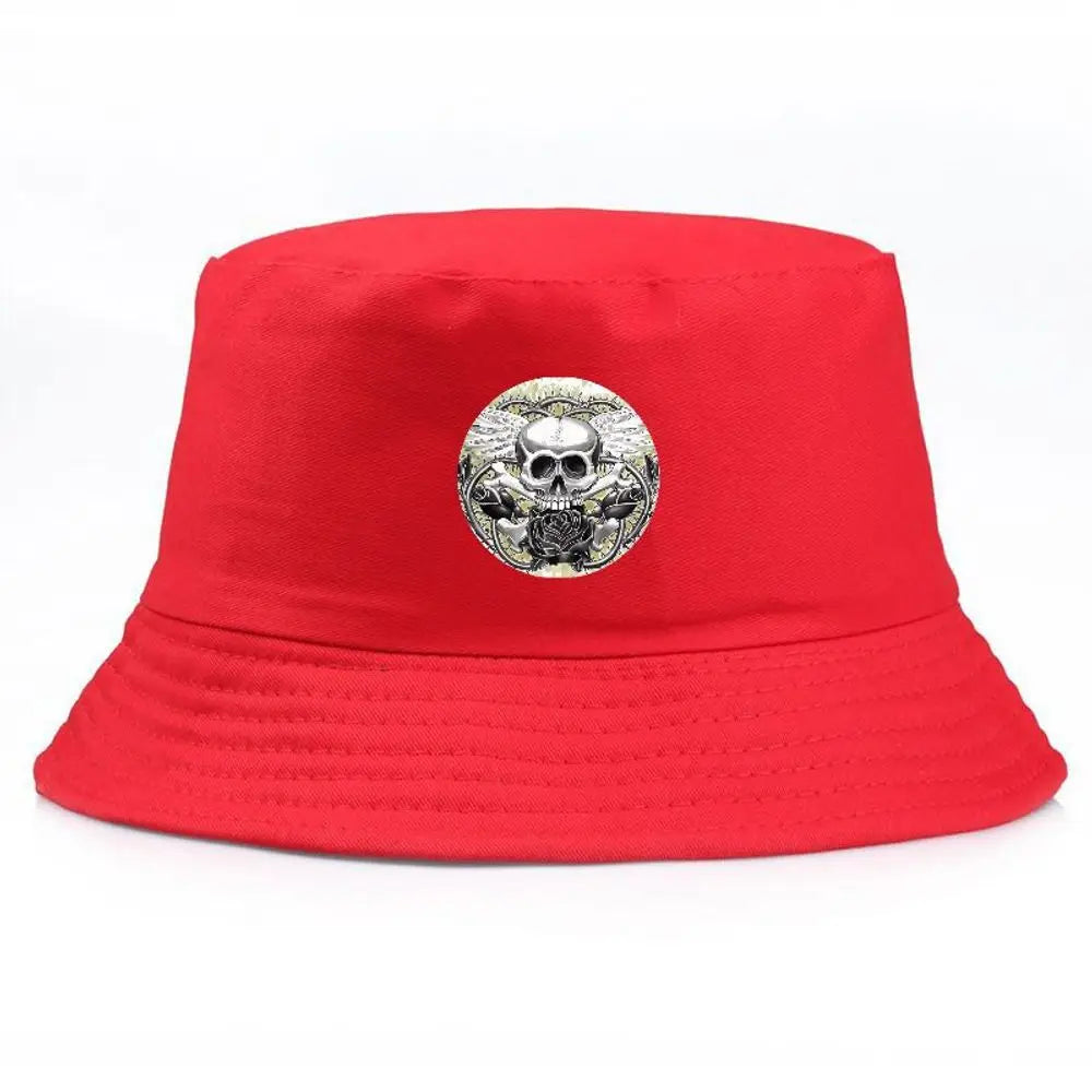 Black Bucket Hat With Skull & Rose Summer Fishing Hat For Men Women