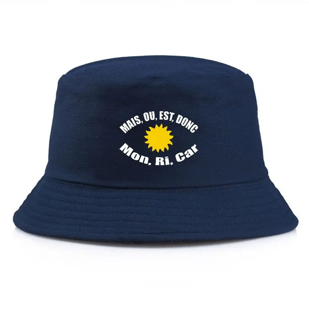 Black Bucket Hat With Sun Embroidered Summer Fisherman Cap For Men Women