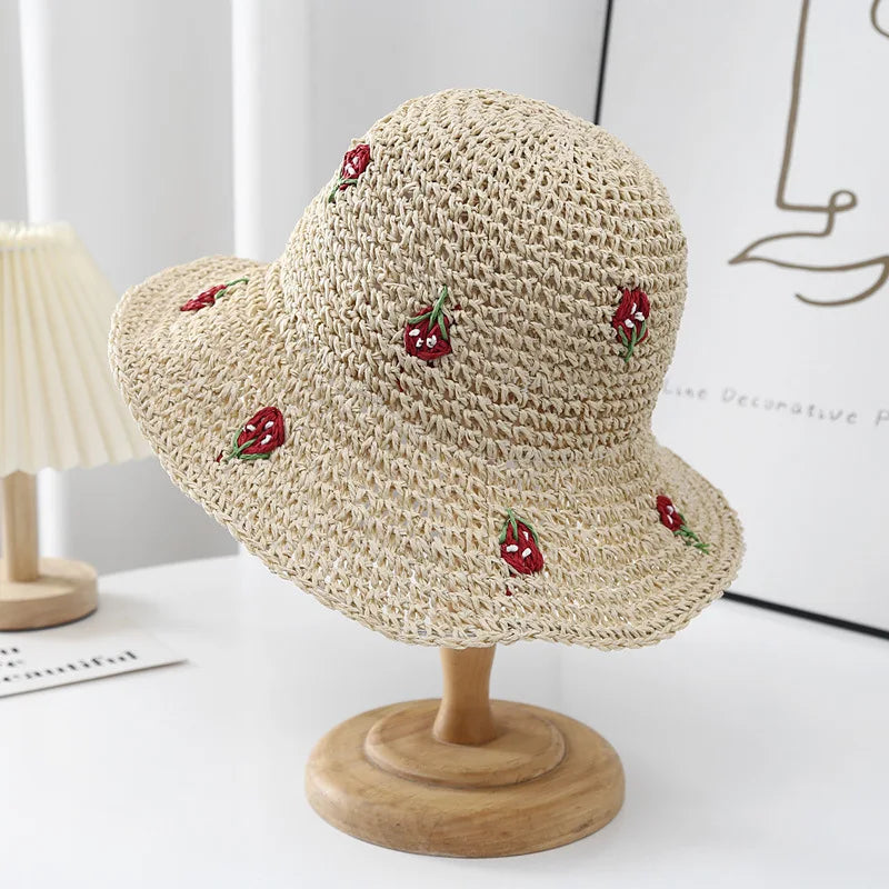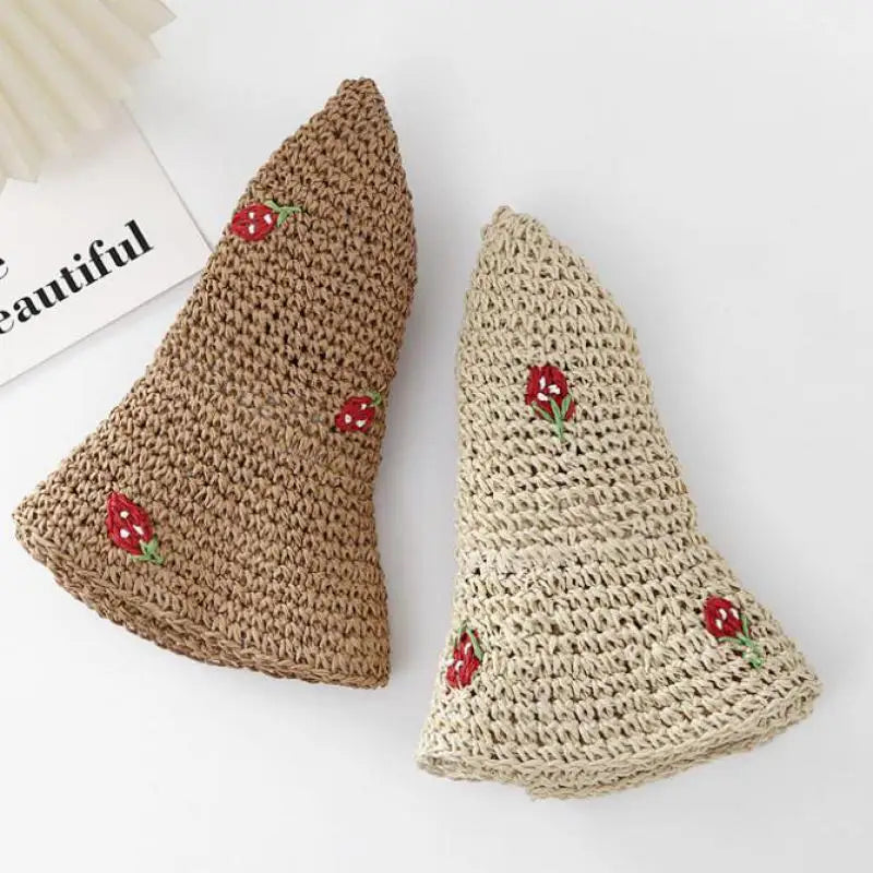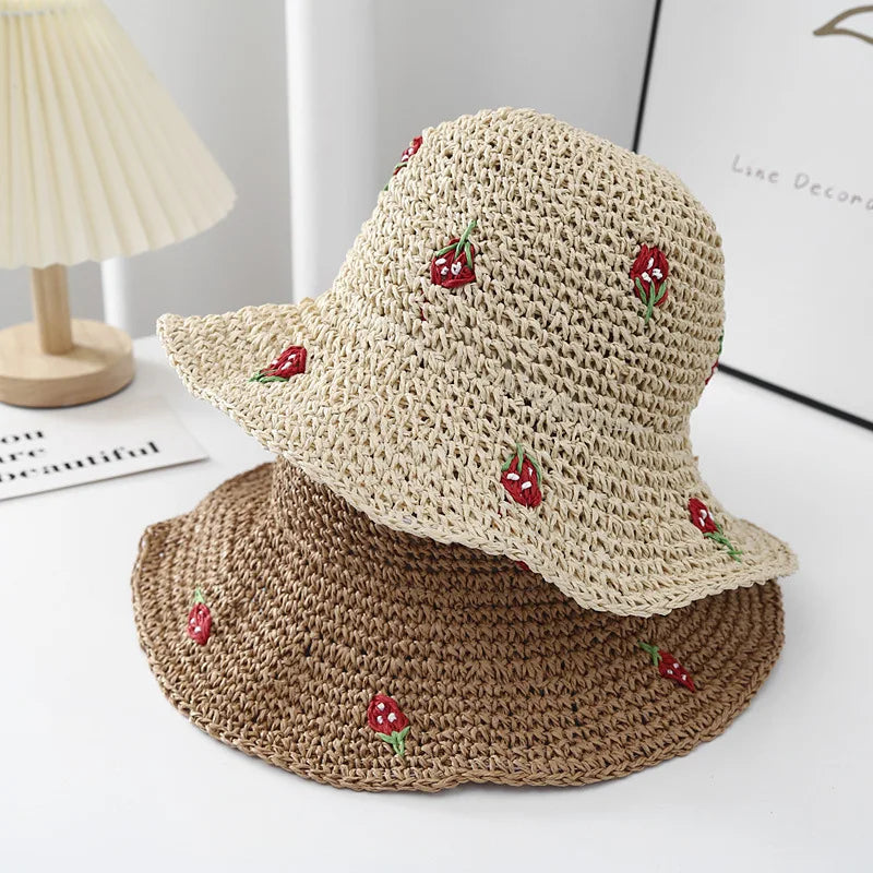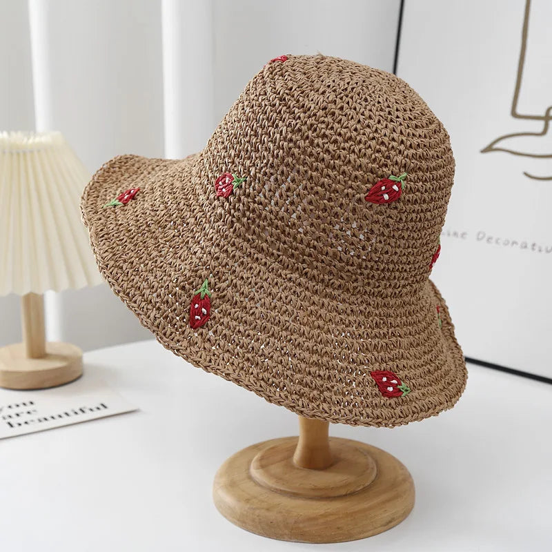 This summer hat features a charming strawberry pattern and provides effective sun protection, making it an ideal accessory for women seeking both style and functionality. Crafted to shield your face from harmful UV rays, it combines lightweight comfort with a breathable design, perfect for outdoor activities and sunny days. Its vibrant pattern adds a fresh, playful touch to your summer wardrobe while ensuring you stay cool and protected.
