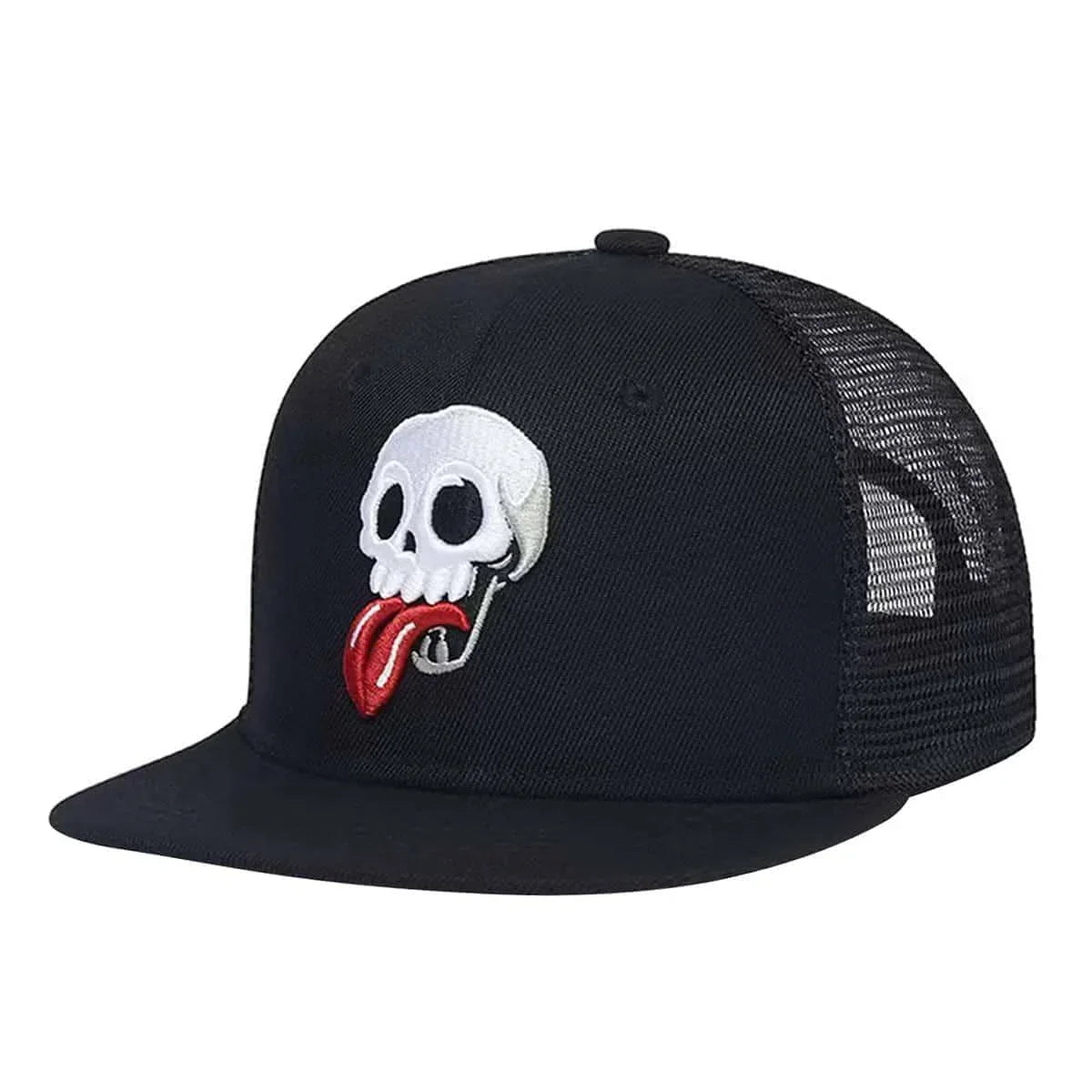 These unisex hip-hop net hats feature a bold "Stick Out Your Tongue" embroidery, combining street style with breathable mesh construction. Designed for comfort and urban flair, they offer a lightweight fit ideal for everyday wear and outdoor activities. Perfect for those seeking a distinctive accessory that blends edgy design with practical ventilation.