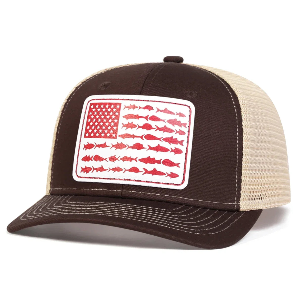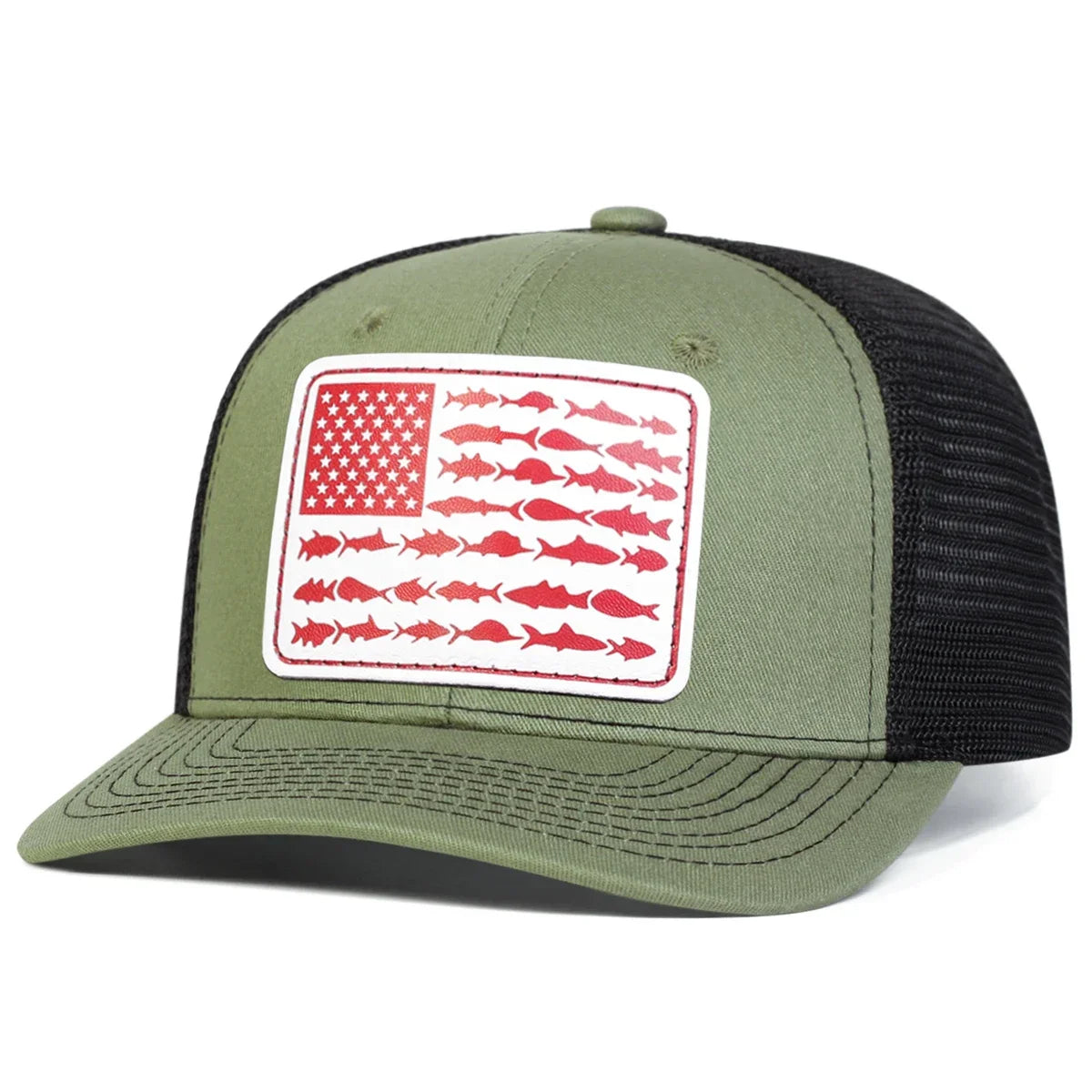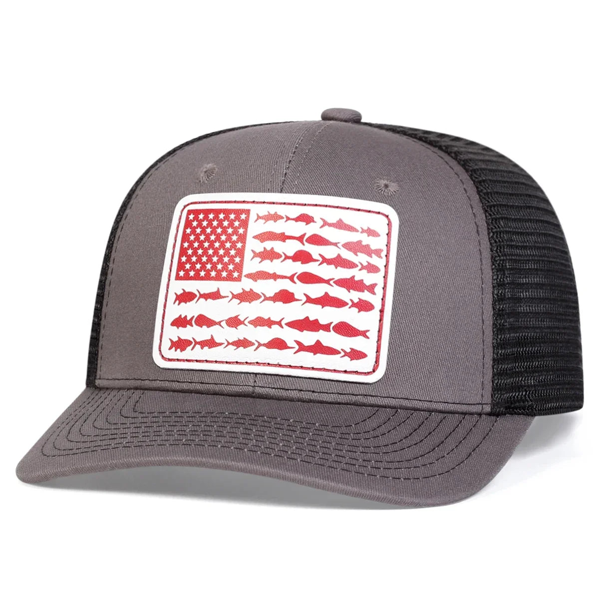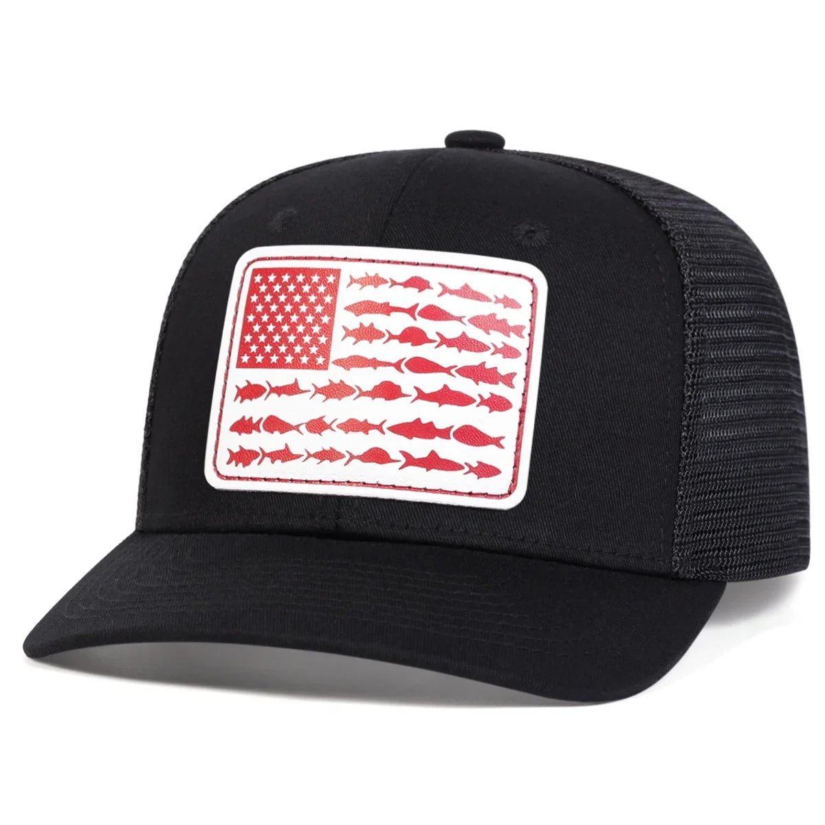 Unisex White Flag Little Fish Leather Label Baseball Net Caps